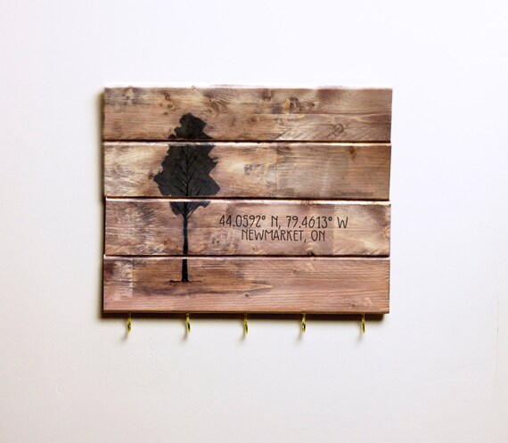 Key Rack Organizer Wall Keyholder Key Rack Rustic Key Holder Modern Wood Sign Wood Key Holder Custom Coordinates Custom Wooden Sign